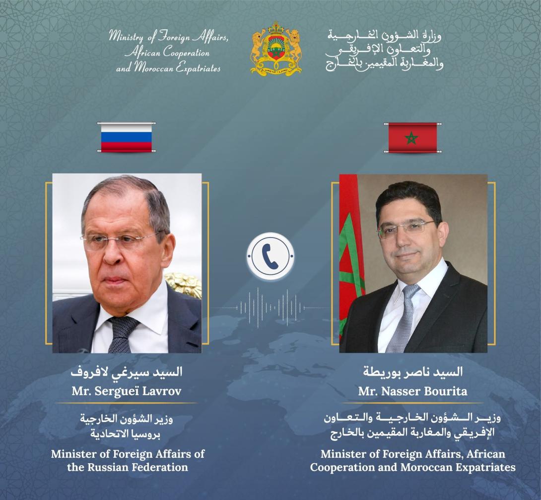 أجرى وزير الشؤون الخارجية والتعاون الإفريقي والمغاربة المقيمين بالخارج، السيد ناصر بوريطة،اليوم الثلاثاء، اتصالاً هاتفياً مع وزير الخارجية الروسي، السيد سيرغي لافروف.
