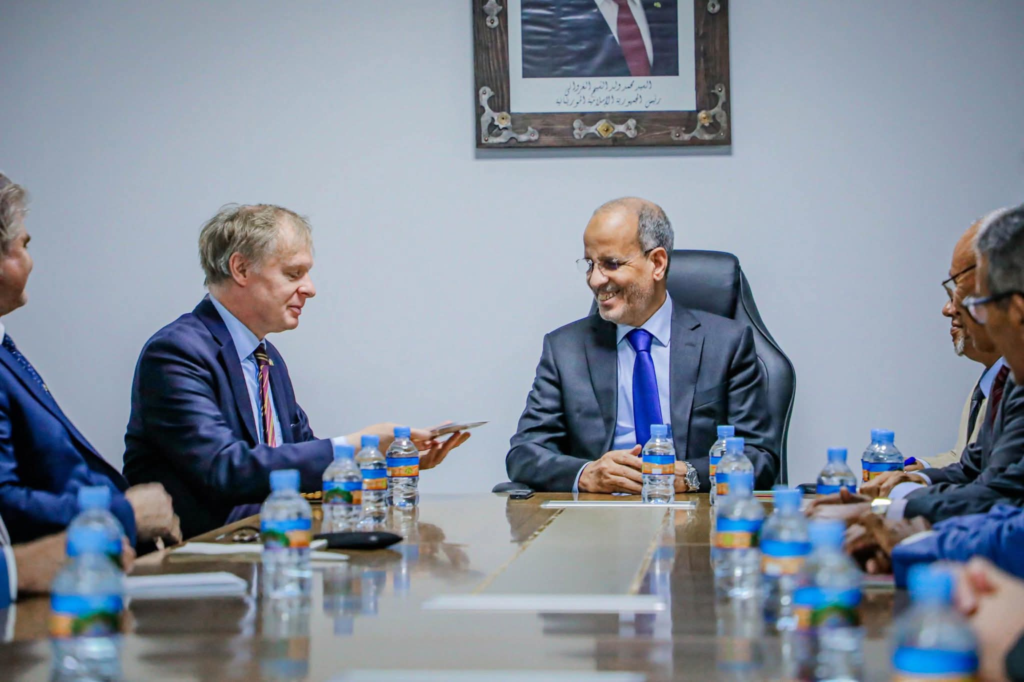 استقبل وزير التكوين المهني والصناعة التقليدية والحرف، السيد محمد ماء العينين ولد أييه، صباح اليوم الخميس بنواكشوط، بعثة من جمهورية ألمانيا الاتحادية تضم السفير فلوريان رايندل وممثلين عن التعاون الألماني GIZ وبنك التنمية الألماني KfW، برئاسة مدير شؤون إفريقيا بوزارة التعاون الاقتصادي والتنمية الألمانية، السيد كريستوف راو.