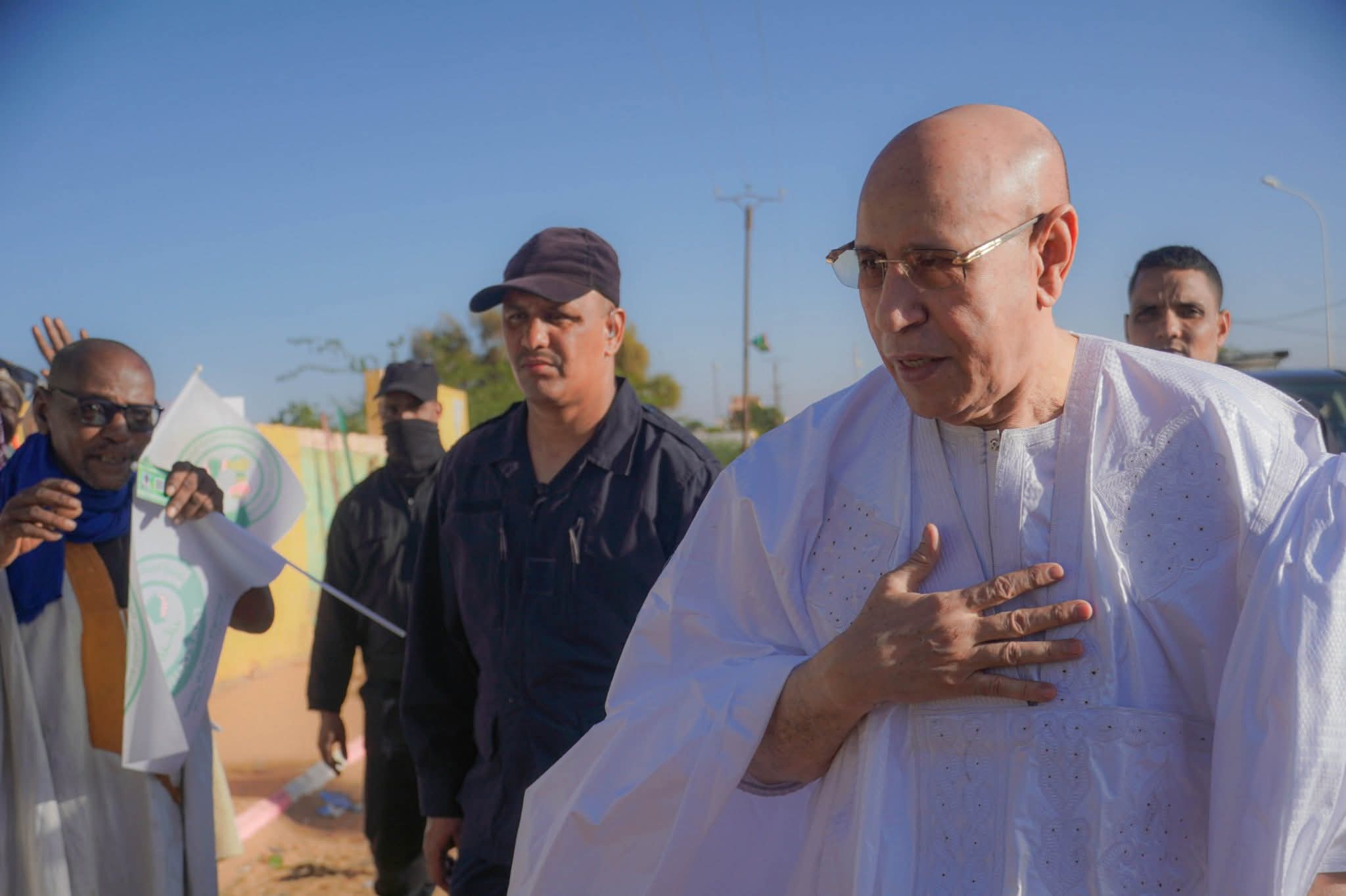 توقّف فخامة رئيس الجمهورية، السيد محمد ولد الشيخ الغزواني، مساء امس الاثنين، على طريقه إلى مطار مدينة كيهيدي، لتحية مجموعة من مستفيدي البرامج الاجتماعية التي تنفذها المندوبية العامة للتضامن الوطني ومكافحة الإقصاء “التآزر”.