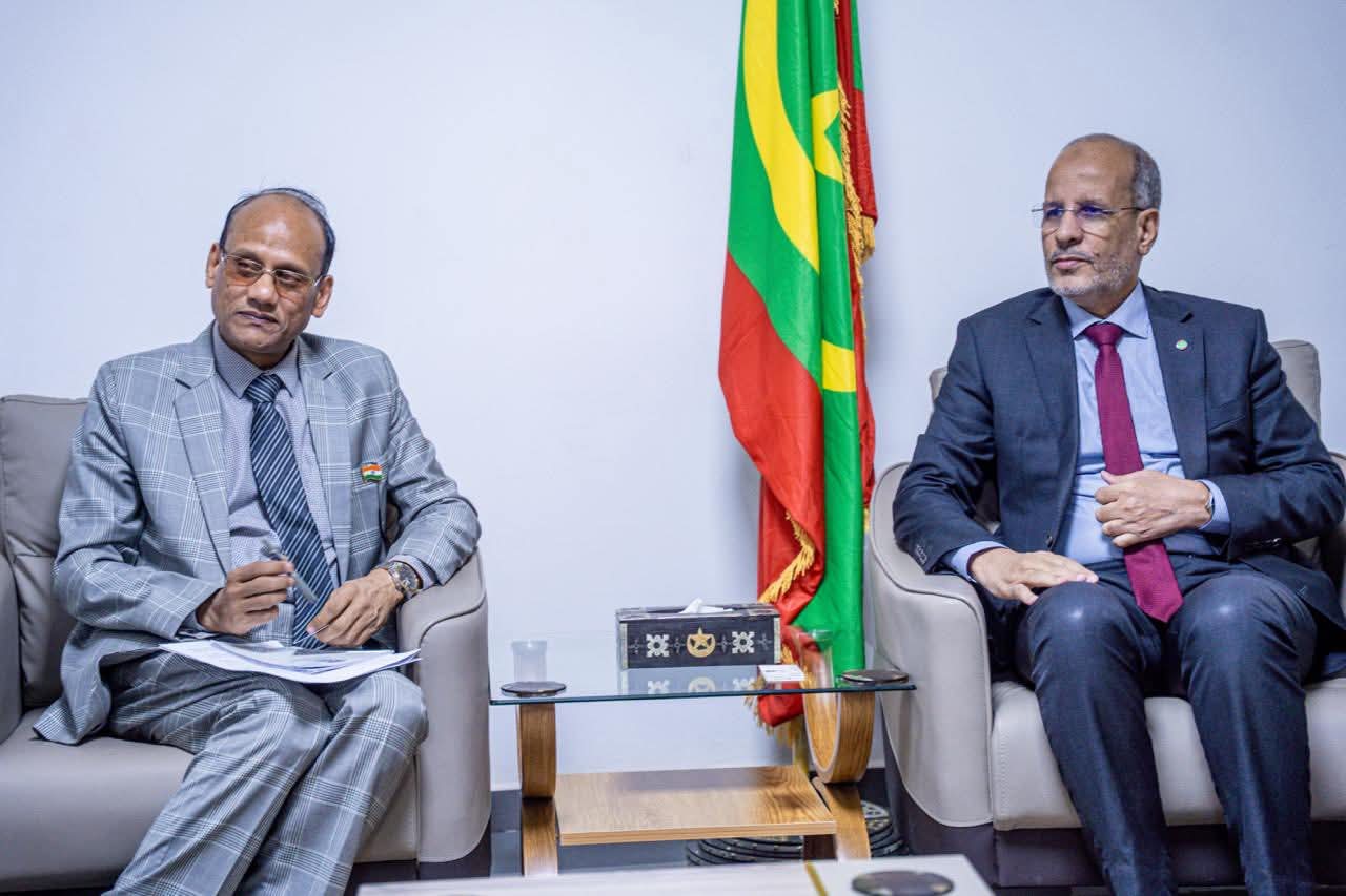 نواكشوط، 26 فبراير 2026 – استقبل معالي وزير التكوين المهني والصناعة التقليدية والحرف، السيد محمد ماء العينين ولد أييه، اليوم الخميس بمكتبه في نواكشوط، سعادة السيد نيراج أغروال، سفير جمهورية الهند المعتمد لدى الجمهورية الإسلامية موريتانيا.