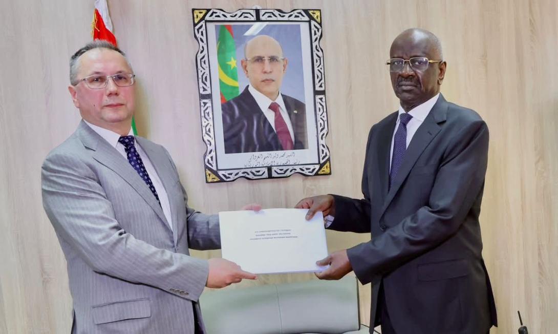 استقبل معالي وزير الخارجية، السيد محمد سالم مرزوگ، اليوم في مكتبه بالوزارة، سعادة السيد أليكسي مالينكو، الذي سلّمه نسخة من أوراق اعتماده سفيراً لـروسيا الاتحادية لدى بلادنا.