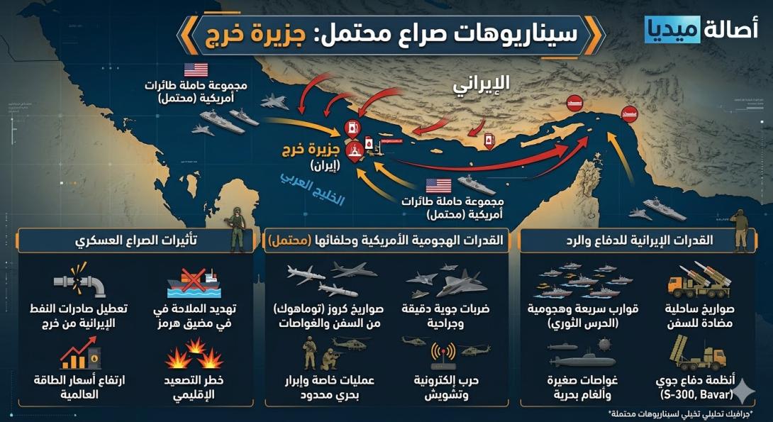 ويرى بعض المراقبين أن أي تحرك محتمل قد يكون محدودًا أو ذا طابع استعراضي للضغط السياسي والعسكري، إلا أن حساسية الموقع الاستراتيجي للجزيرة تجعل حتى العمليات المحدودة عرضة للتصعيد السريع.