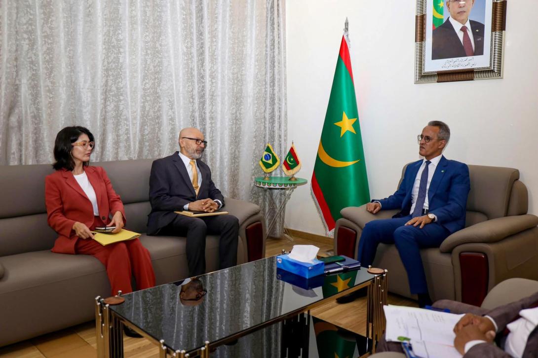 استقبل وزير الصيد والبنى التحتية البحرية والمينائية، السيد المختار أحمد بوسيف، صباح اليوم الخميس 23 أبريل 2026 بمكتبه في نواكشوط، سعادة سفير جمهورية البرازيل الفيدرالية المعتمد لدى موريتانيا، السيد إفالدو فريري.