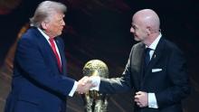 منحت الفيفا، الجمعة، الرئيس الأميركي دونالد ترامب جائزة "الفيفا للسلام" خلال مراسم قرعة كأس العالم 2026 في واشنطن، في أول نسخة من هذا الوسام. وجاء التكريم وسط تساؤلات أثارتها تصريحات ترامب حول احتمال شن هجوم "بري" وشيك على فنزويلا، وهو ما لم ينفه عند سؤاله قبل الحفل.