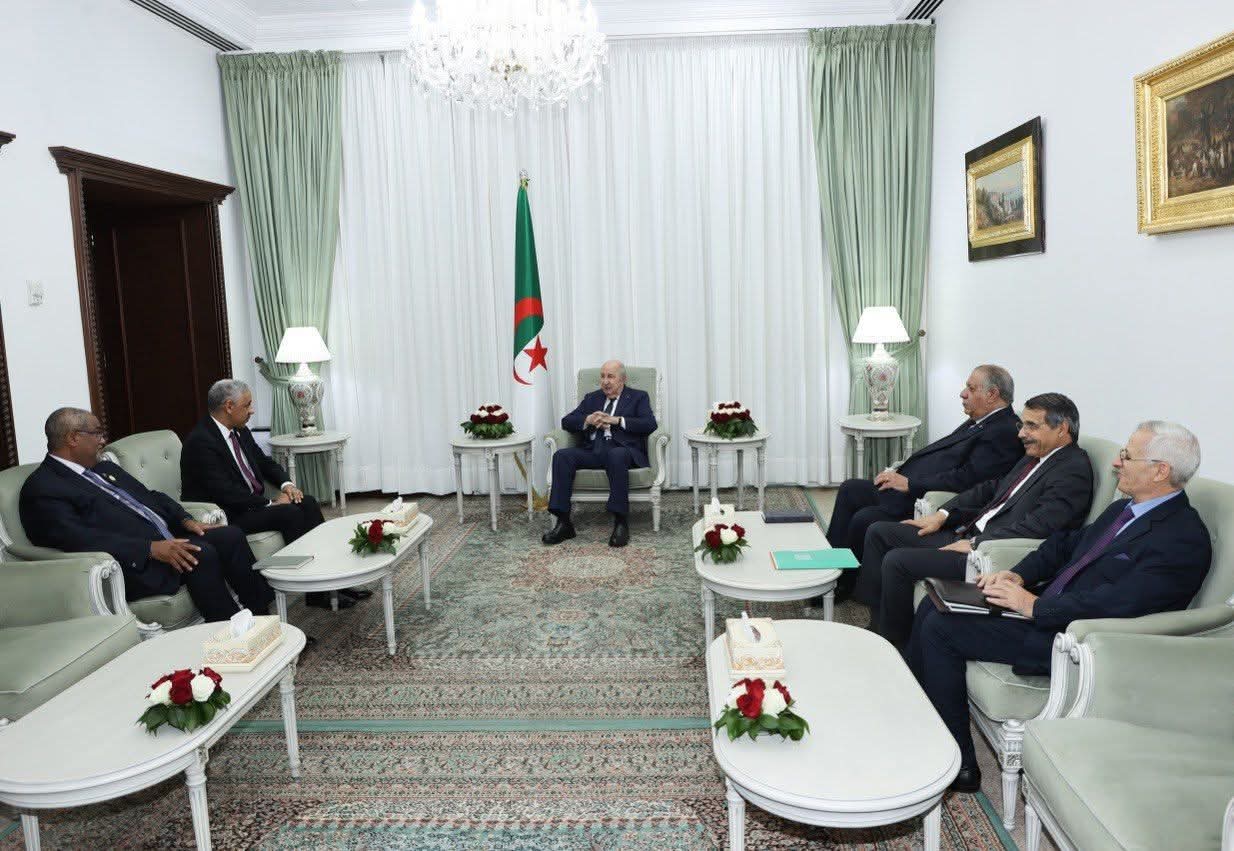 استُقبل رئيس مجموعة البنك الإفريقي للتنمية، الدكتور سيدي ولد التاه، اليوم في العاصمة الجزائرية من طرف رئيس الجمهورية، السيد عبد المجيد تبون، في لقاء خُصص لبحث آفاق التعاون الاقتصادي والتمويلي بين الجانبين.