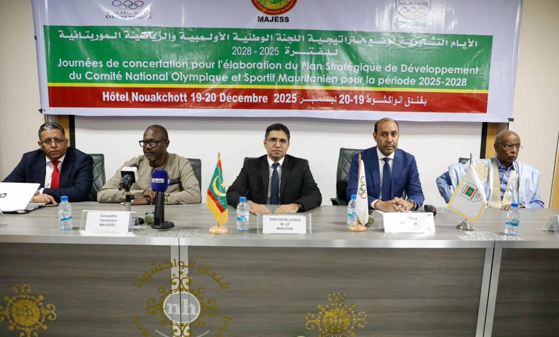 أشرف معالي وزير تمكين الشباب والتشغيل والرياضة والخدمة المدنية، السيد محمد عبد الله لولي، صباح اليوم الجمعة بنواكشوط، على انطلاق الأيام التشاورية المخصصة لإعداد الاستراتيجية التنموية للجنة الوطنية الأولمبية والرياضية الموريتانية للفترة 2025–2028.