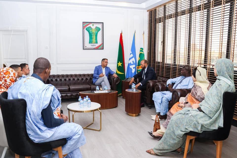 استقبل رئيس الاتحادية الموريتانية لكرة القدم، السيد أحمد ولد يحي، بمقر الاتحادية، وفداً من مكتب نقابة الصحافيين الرياضيين برئاسة السيد عبد الرحمن سيدبات.