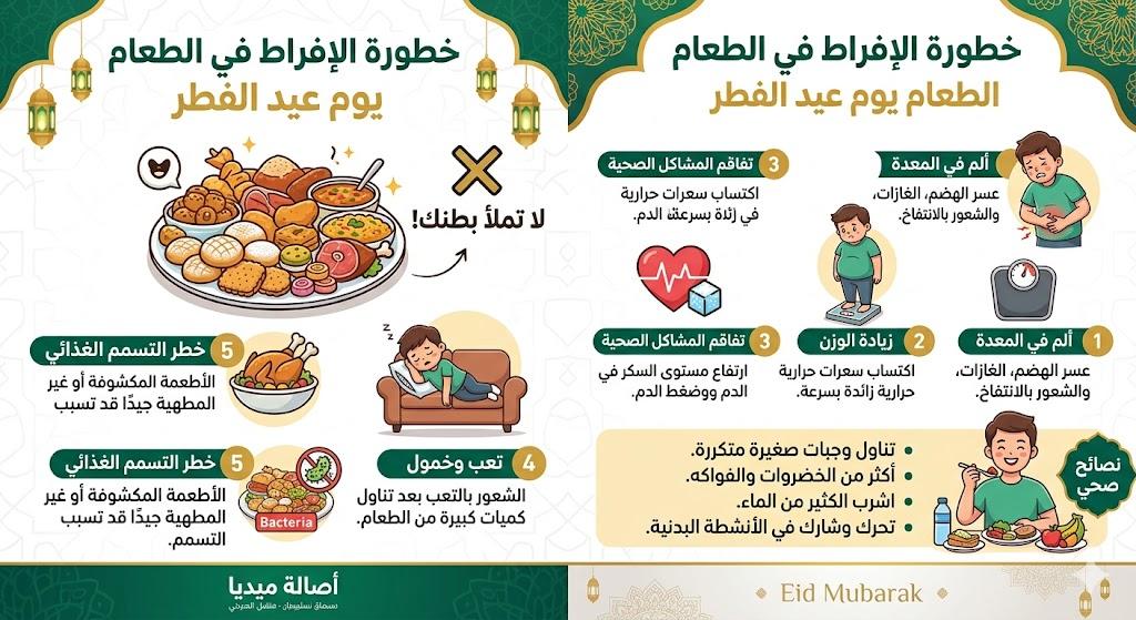 ويبقى التوازن في الطعام والاعتدال أساساً للاستمتاع بالعيد دون آثار صحية سلبية.