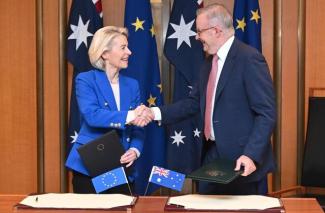 وقّعت أستراليا والاتحاد الأوروبي، الثلاثاء 24 مارس في كانبرا، اتفاقية واسعة للتجارة الحرة تُعد ثمرة سنوات من المفاوضات، بهدف تعزيز التبادل التجاري بين الجانبين.