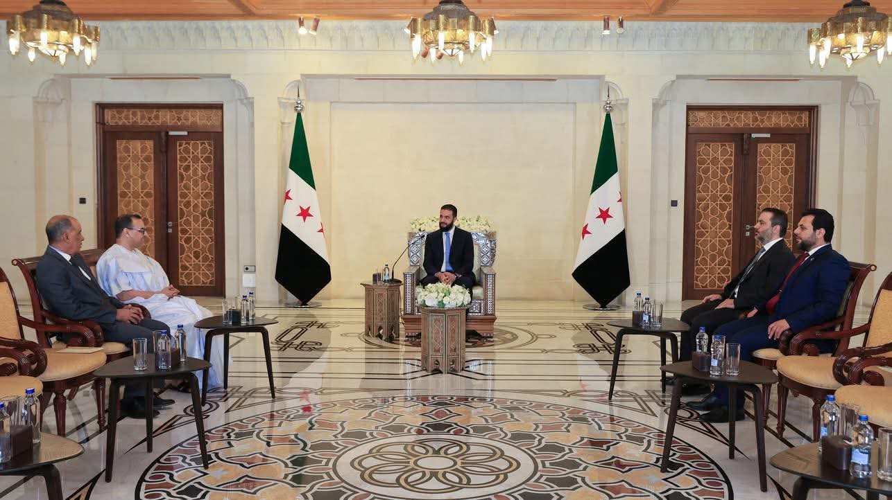 استقبل الرئيس السوري أحمد الشرع في قصر الشعب بدمشق السفير الطالب المختار الشيخ محمد المجتبى، الذي قدم أوراق اعتماده سفيرًا لموريتانيا لدى الجمهورية العربية السورية، بحضور وزير الخارجية والمغتربين أسعد الشيباني.