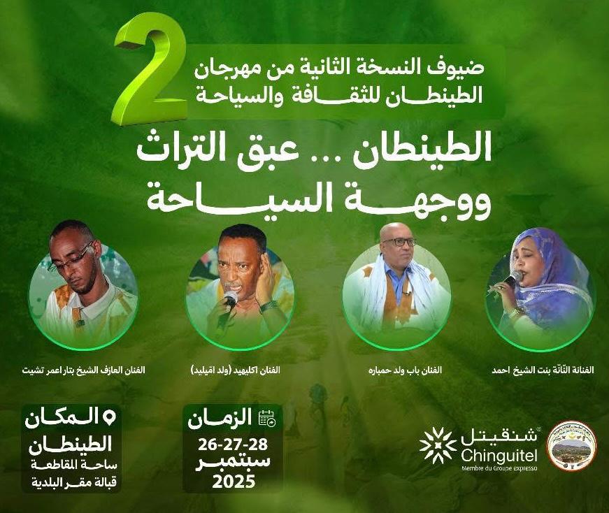 وشهد المهرجان حضور عدد من الشخصيات الثقافية والإدارية، إلى جانب ساكنة المدينة وضيوفها من داخل وخارج الولاية. وأكد رئيس المهرجان، خطري ولد سيدي ولد أصوينع، في ختام الفعاليات، أن هذه النسخة رسّخت مكانة الطينطان كوجهة ثقافية وسياحية، مشيرًا إلى أهمية استمرار مثل هذه المبادرات في دعم الثقافة المحلية وتنشيط السياحة الداخلية.