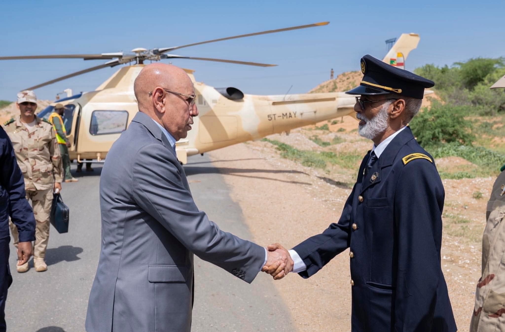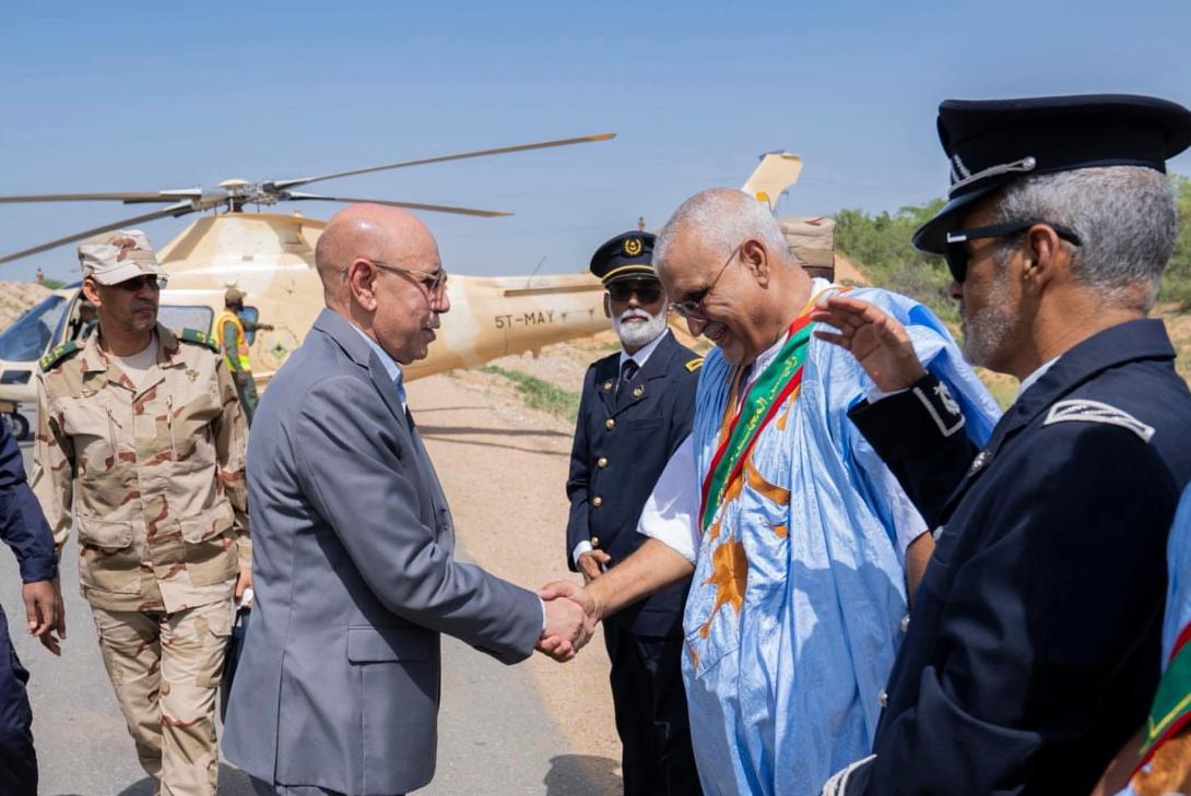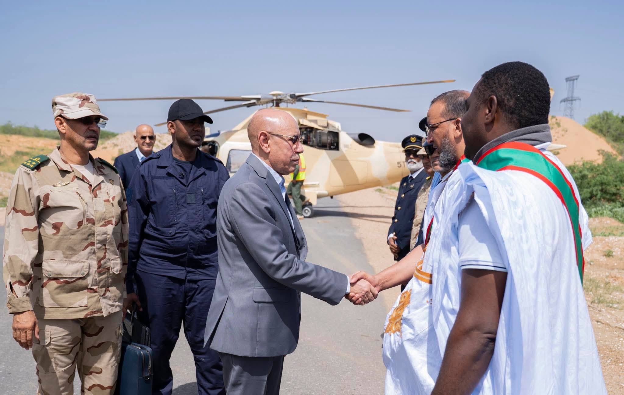 وكان في مقدمة مستقبليه لدى نزوله من المروحية رئيس جهة اترارزة، الأستاذ محمد ولد الشيخ، إلى جانب عمدة بلدية المنطقة والسلطات الإدارية والأمنية.