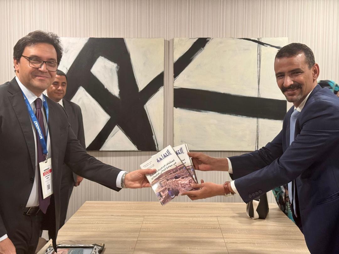 كما التقى معاليه وزير الثقافة الإسباني إرنست أورتاسو، وتم خلال اللقاء بحث آفاق التعاون الثقافي بين البلدين، خاصة في مجالات التبادل الثقافي والشراكات المؤسسية، إضافة إلى توجيه دعوة رسمية للوزير الإسباني لحضور مهرجان مدائن التراث بمدينة وادان.