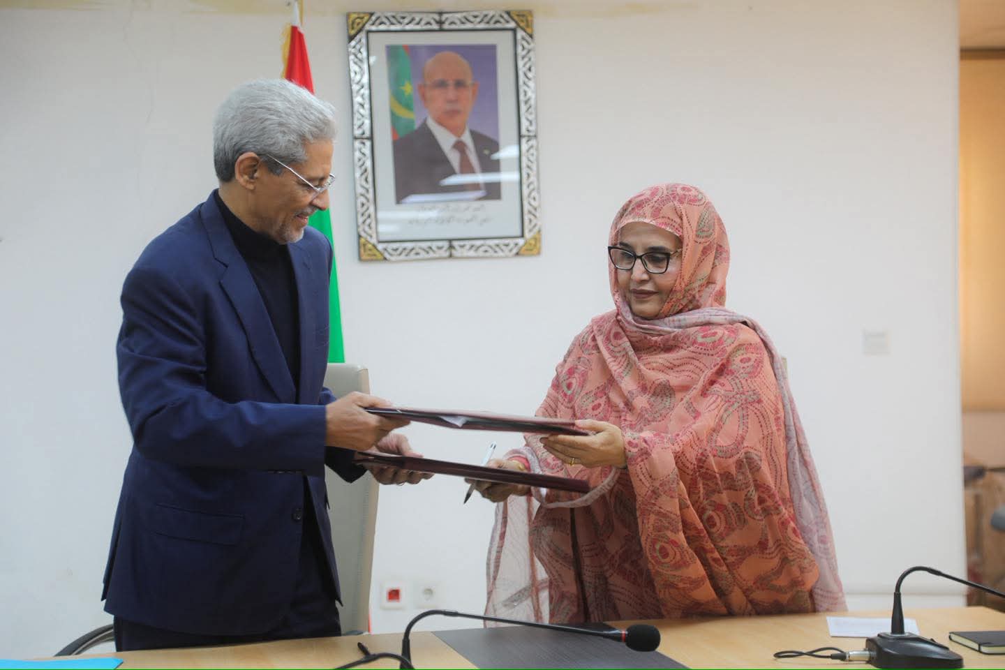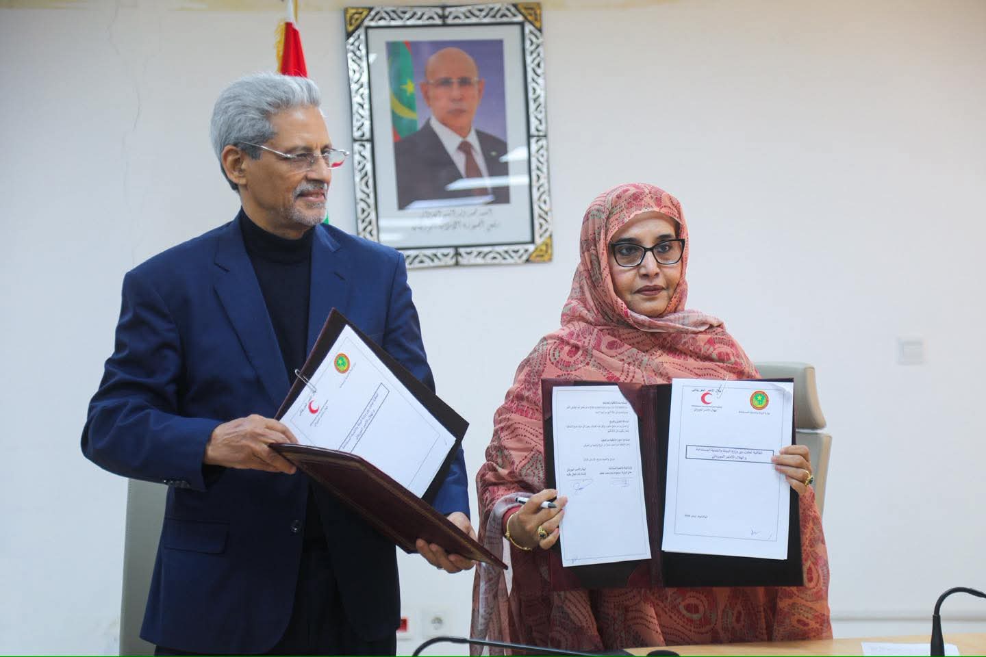 أشرفت وزيرة البيئة والتنمية المستدامة، السيدة مسعودة بنت بحام محمد لغظف، صباح اليوم الجمعة 9 يناير 2026، على توقيع اتفاقية شراكة بين وزارة البيئة والتنمية المستدامة والهلال الأحمر الموريتاني، ممثلًا برئيسه الأستاذ بولاه شيغالي موگيّه.
