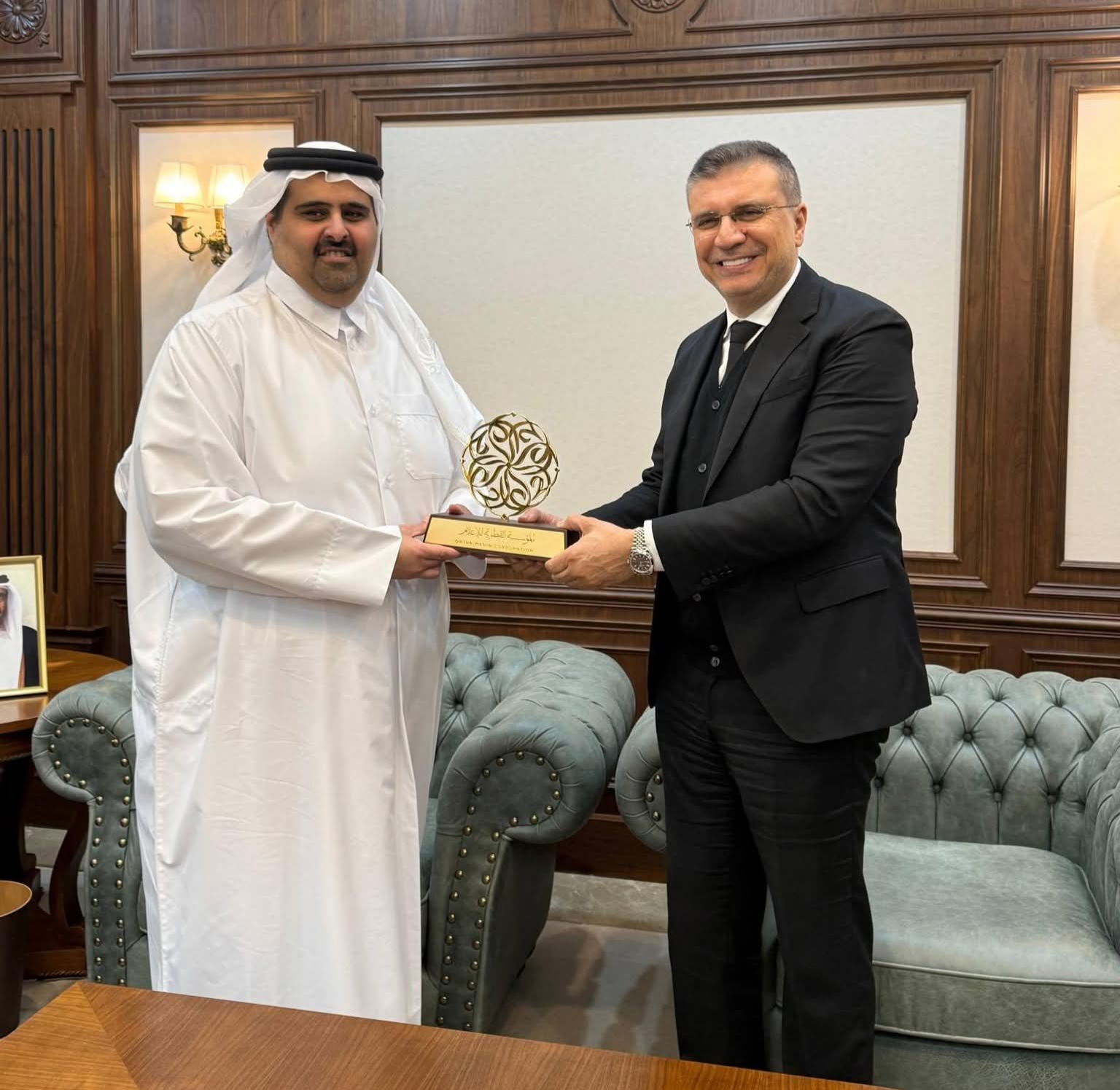 شهد لقاء رسمي جمع الدكتور عمرو الليثي، رئيس اتحاد إذاعات وتلفزيونات دول منظمة التعاون الإسلامي، بسعادة الشيخ خالد بن عبدالعزيز آل ثاني، الرئيس التنفيذي للمؤسسة القطرية للإعلام، مراسم تكريم متبادل، عكس مستوى التقدير المتبادل وعمق العلاقات المؤسسية بين الجانبين.