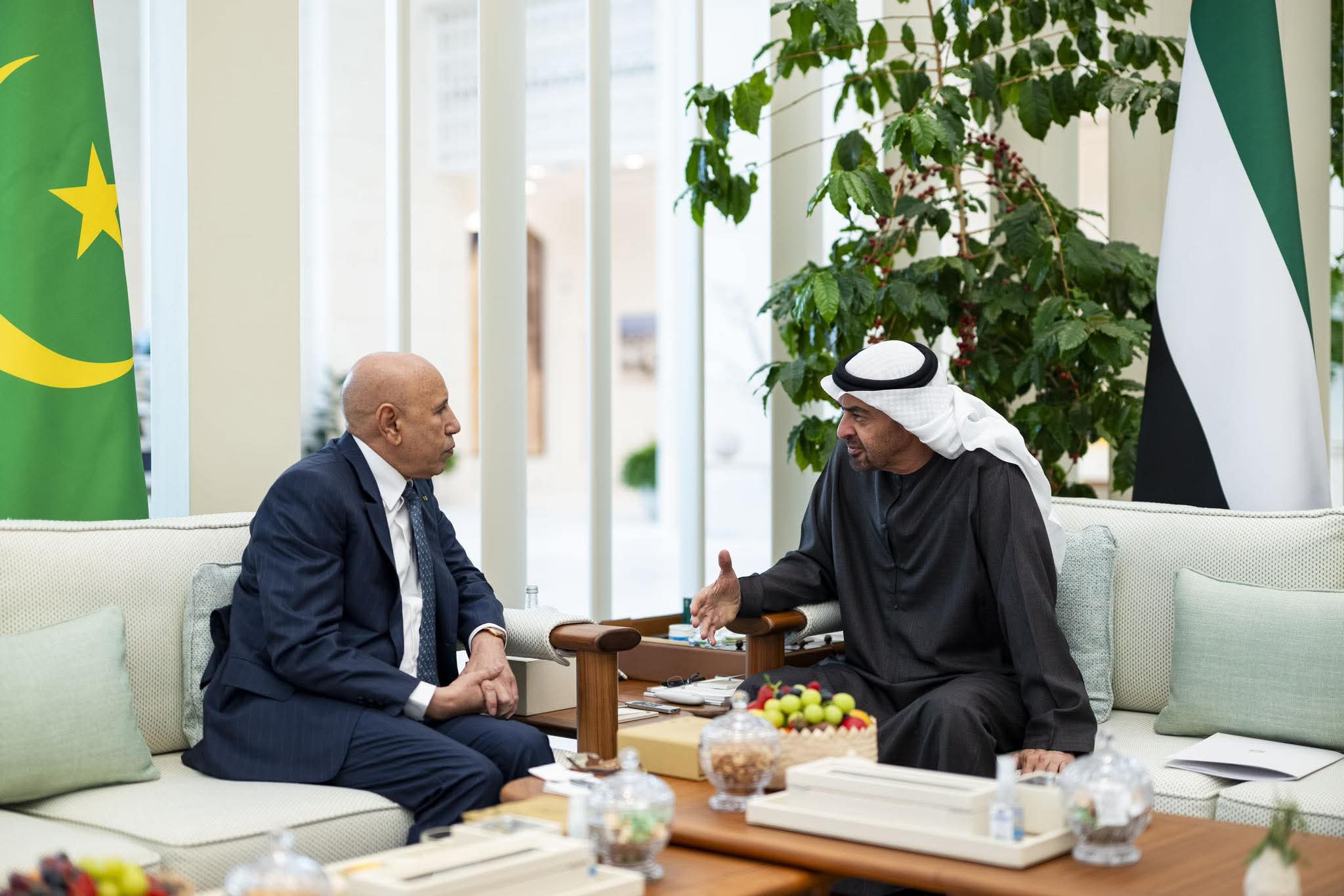أجرى فخامة رئيس الجمهورية، محمد ولد الشيخ الغزواني، اليوم في أبوظبي، مباحثات مع صاحب السمو الشيخ محمد بن زايد آل نهيان، رئيس الإمارات العربية المتحدة.