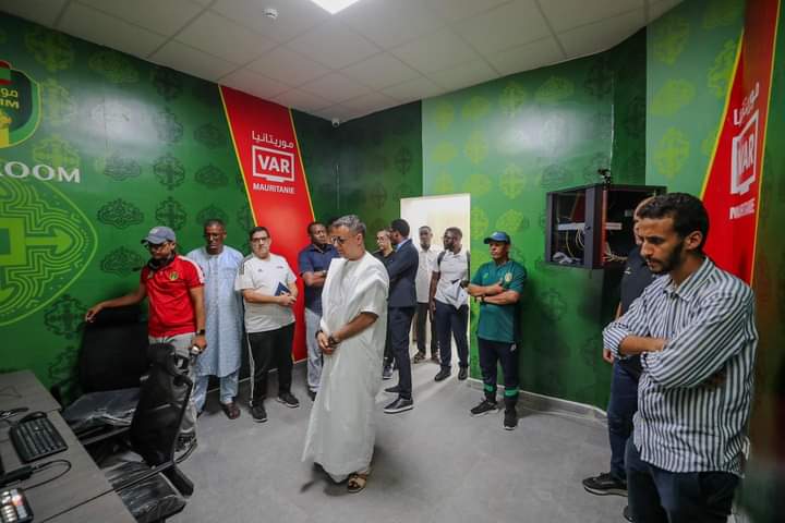 تفقد رئيس الاتحادية الموريتانية لكرة القدم، السيد أحمد ولد يحي، يوم أمس الأحد سير الأعمال في تركيب تقنية الـ VAR ضمن مشروع تطبيق التقنية R في موريتانيا.