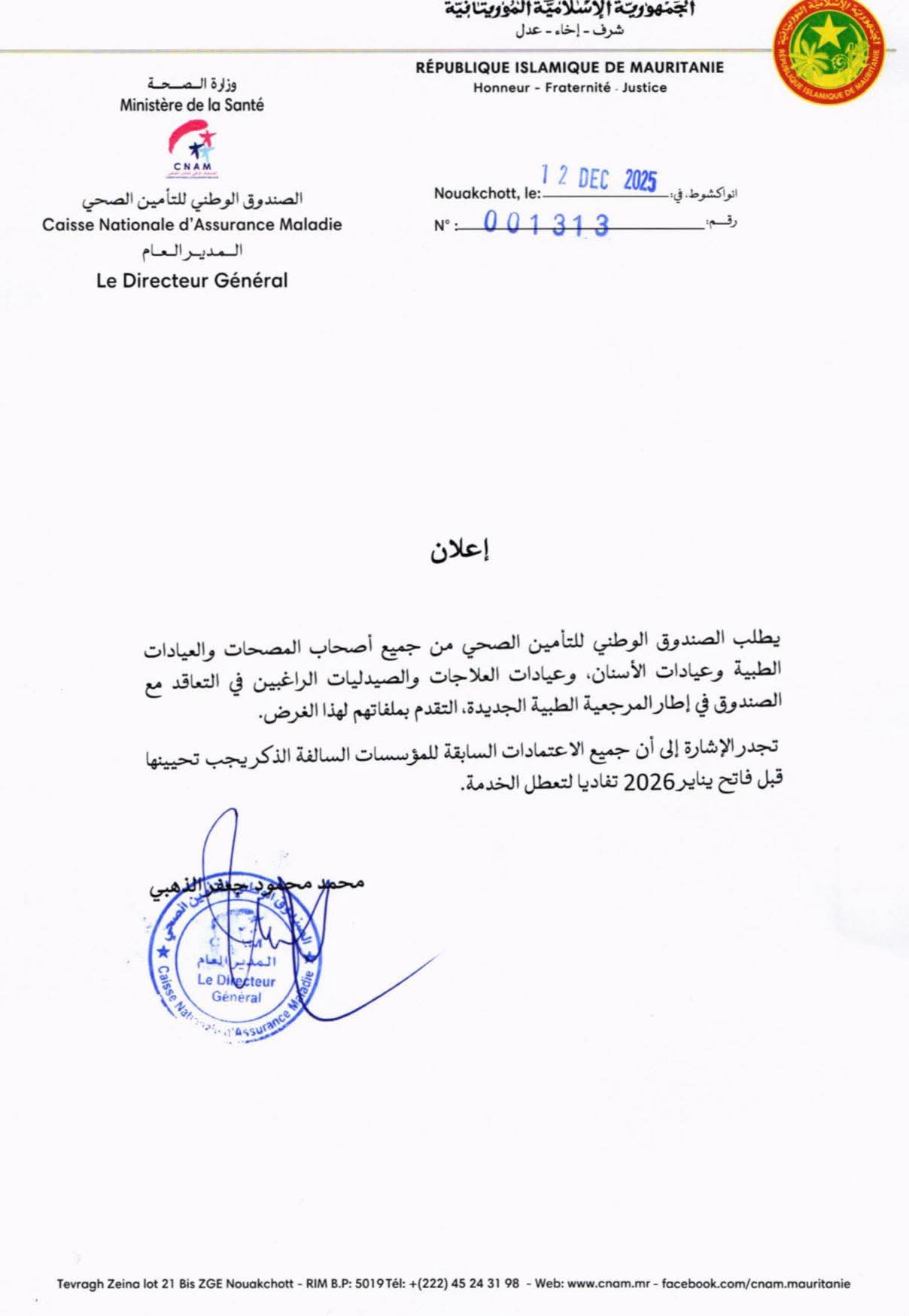 ويأتي هذا الإجراء في إطار خطة كنام لتحديث آليات التعاقد وضمان مطابقة الخدمات الصحية للمعايير الجديدة.