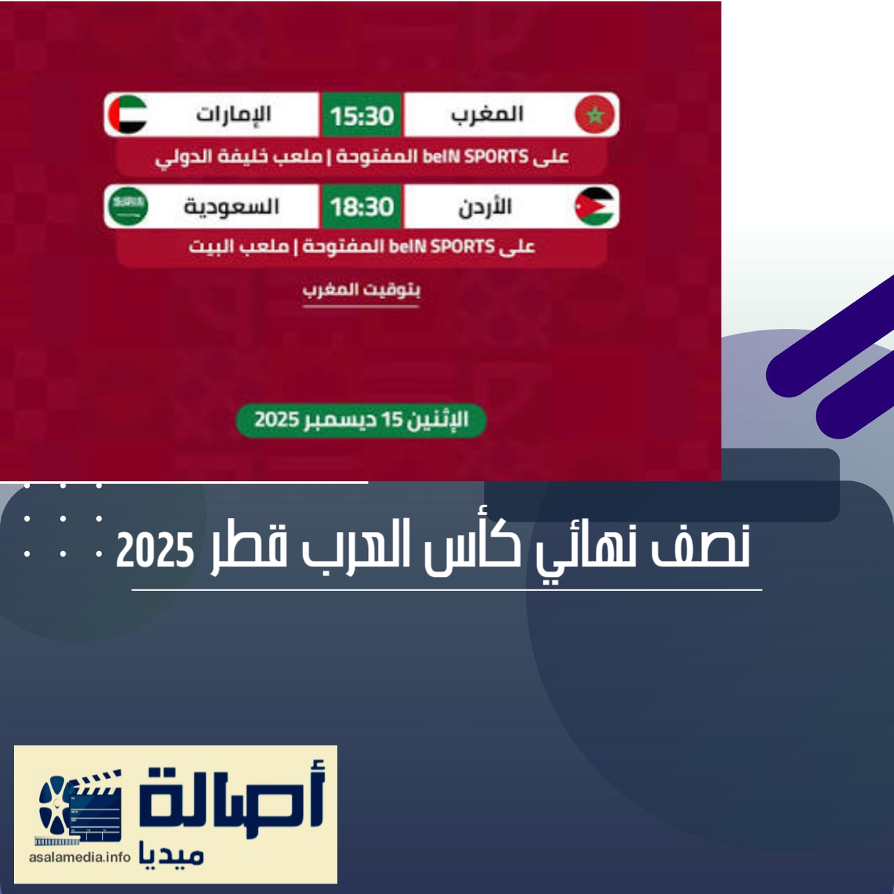 اكتملت ملامح الدور نصف النهائي من بطولة كأس العرب لكرة القدم 2025، المقامة حاليًا في قطر والمتواصلة حتى 18 ديسمبر الجاري، بعد تأهل منتخبات الأردن والسعودية والمغرب والإمارات.