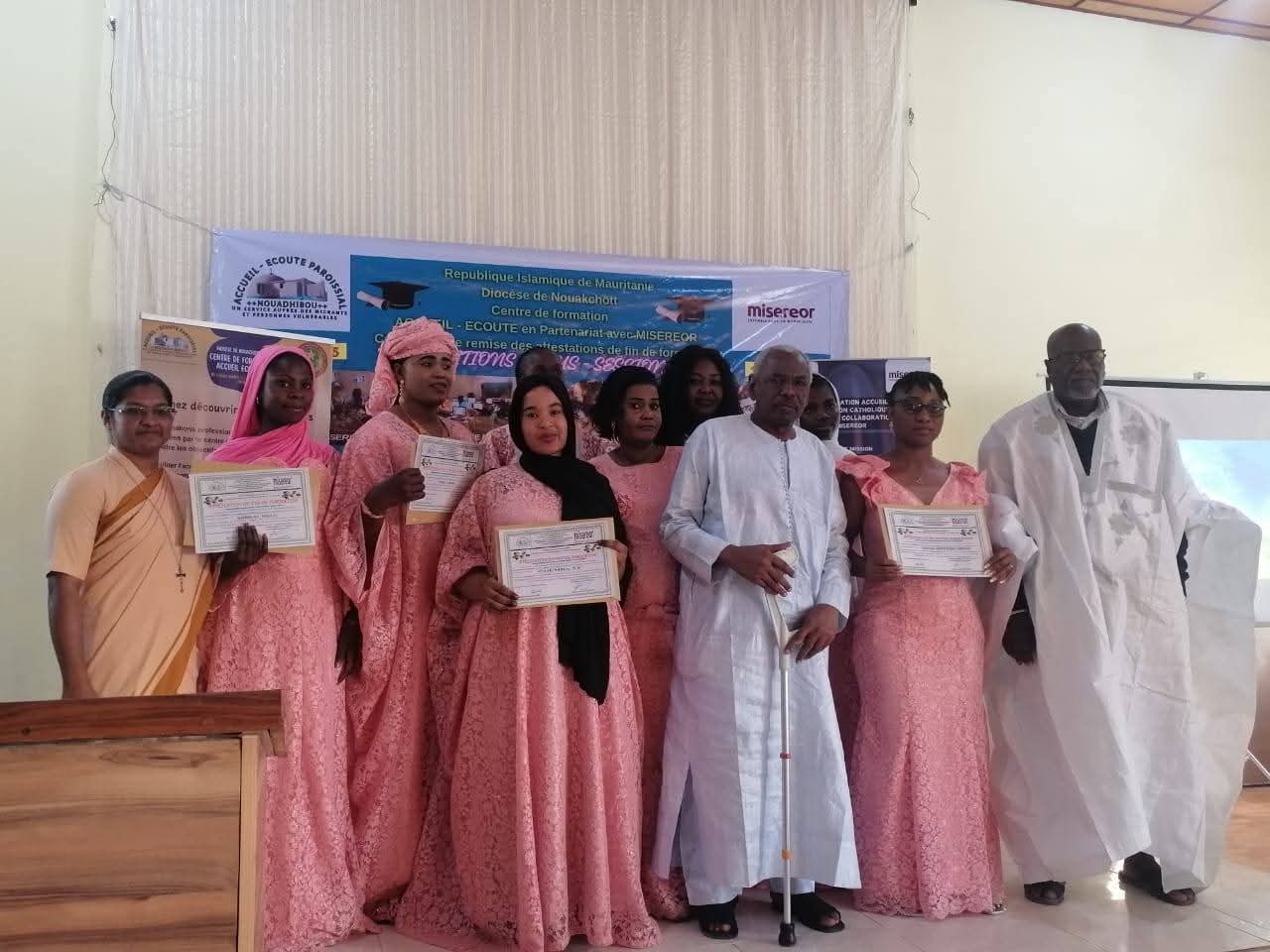 شهد مركز التكوين المهني “Accueil – Écoute” بنواذيبو، مساء السبت، حفل تسليم شهادات نهاية التكوين الذي نظمته البعثة الكاثوليكية بالتعاون مع منظمة MISEREOR.