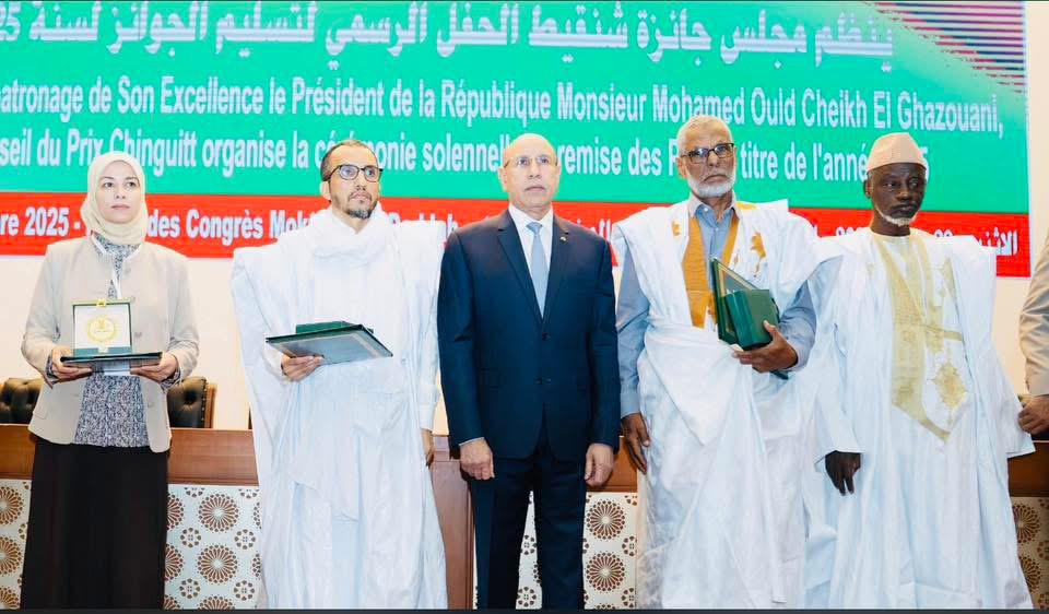 أشرف فخامة رئيس الجمهورية، السيد محمد ولد الشيخ الغزواني، اليوم الاثنين بالمركز الدولي للمؤتمرات “المختار ولد داداه”، على حفل توزيع جوائز شنقيط للعام 2025.