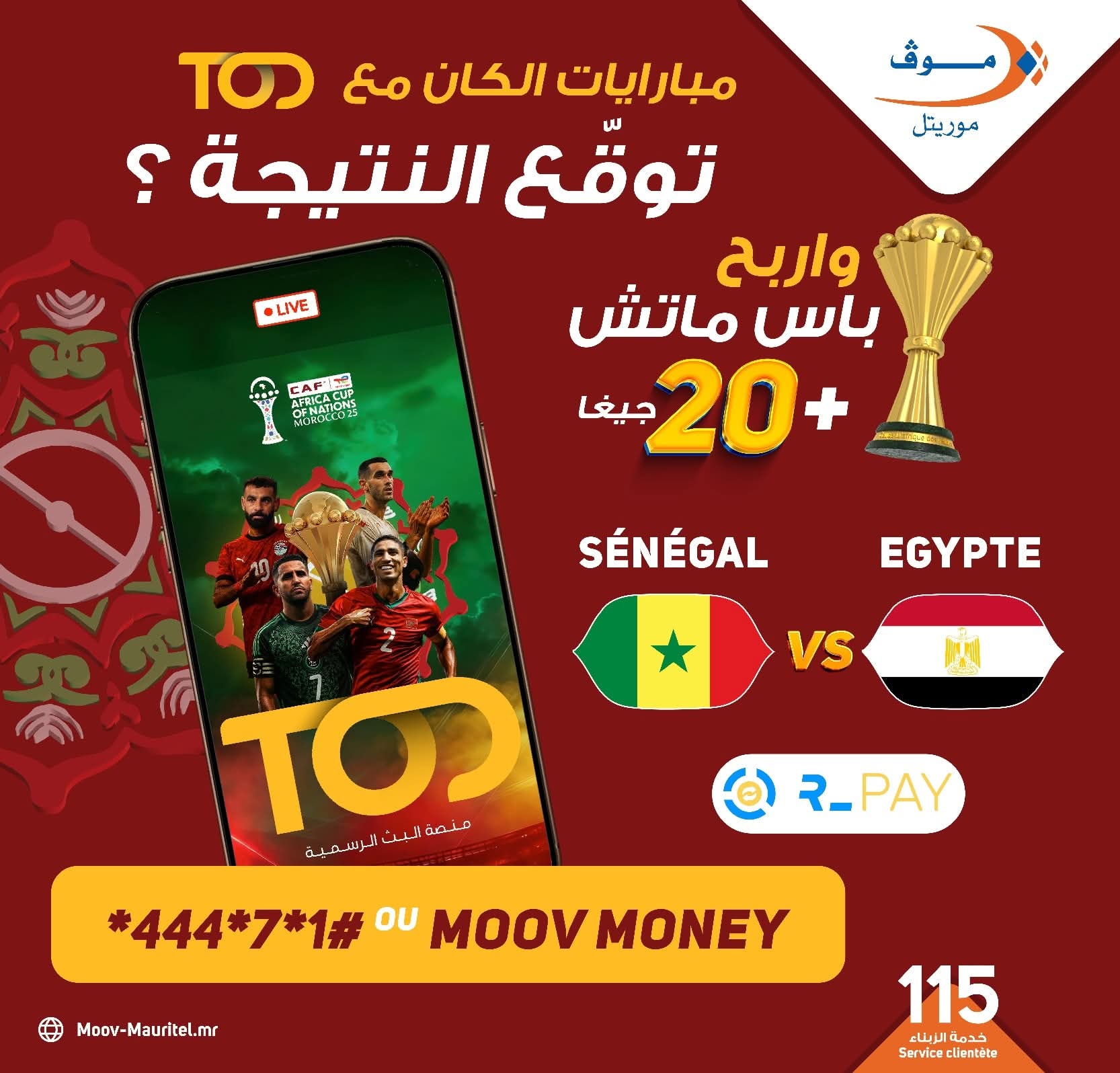 موف موريتل تطلق مسابقة توقعات مباراة مصر والسنغال
