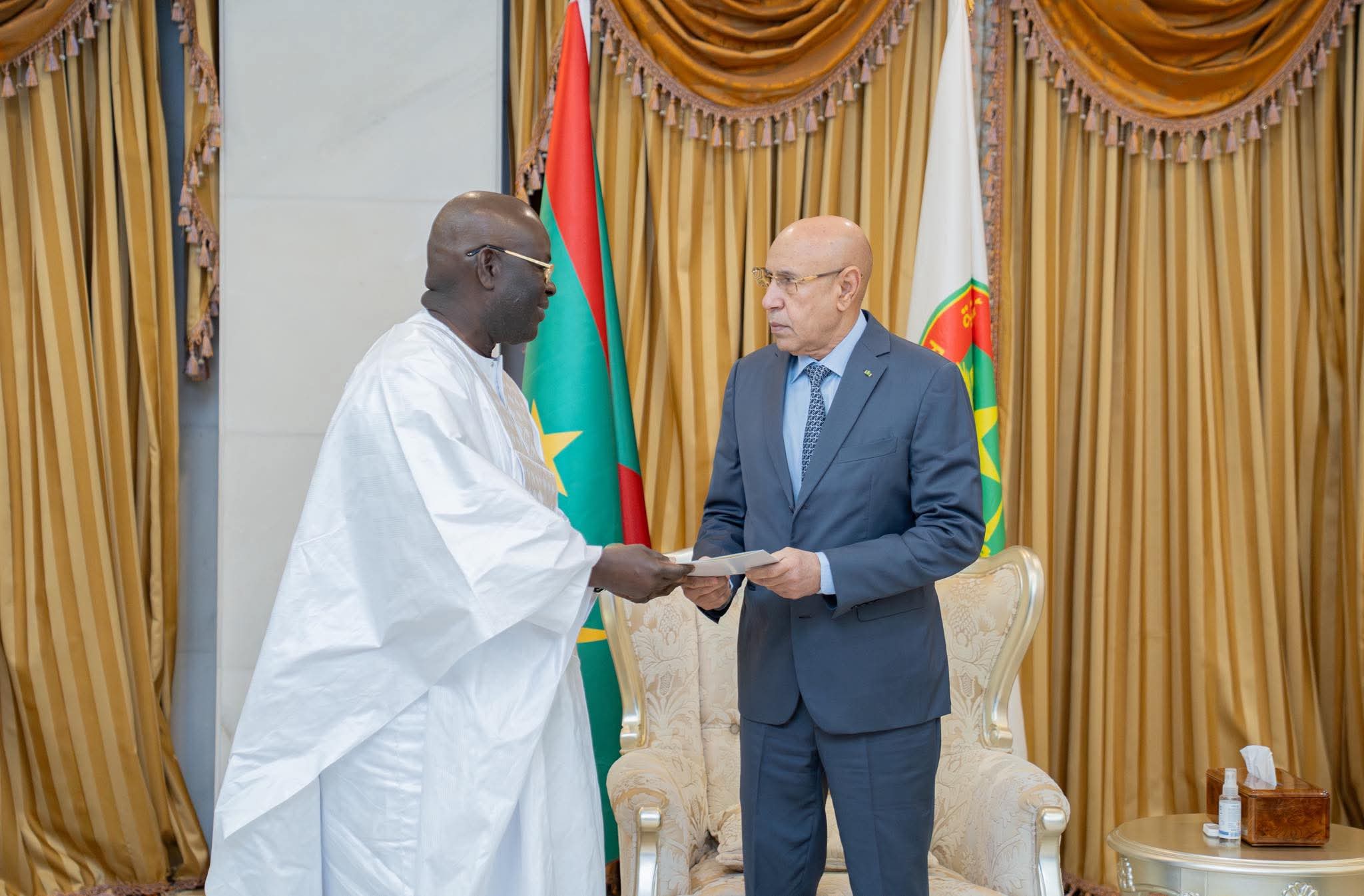 استقبل فخامة رئيس الجمهورية، السيد محمد ولد الشيخ الغزواني، اليوم بالقصر الرئاسي في نواكشوط، السيد أمادو دينغ، المبعوث الخاص للرئيس الغامبي.