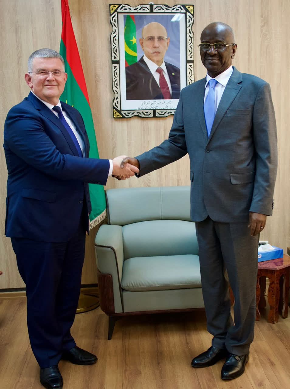 كما أعرب الوزير لسعادة السفير عن خالص تمنياته له بالتوفيق والنجاح في مهامه الدبلوماسية الجديدة، متمنيًا له مسيرة موفقة في توطيد علاقات التعاون بين موريتانيا وجمهورية التشيك.