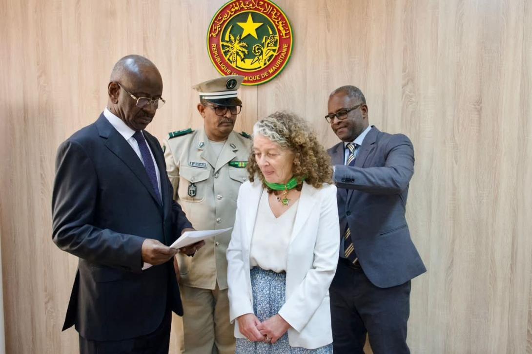 ويأتي هذا التوشيح بمناسبة انتهاء مهامها في موريتانيا، تقديرًا لجهودها المتميزة في تعزيز التنسيق والتعاون بين موريتانيا ومنظومة الأمم المتحدة، ودورها في دعم مجالات الشراكة والقضايا ذات الاهتمام المشترك.
