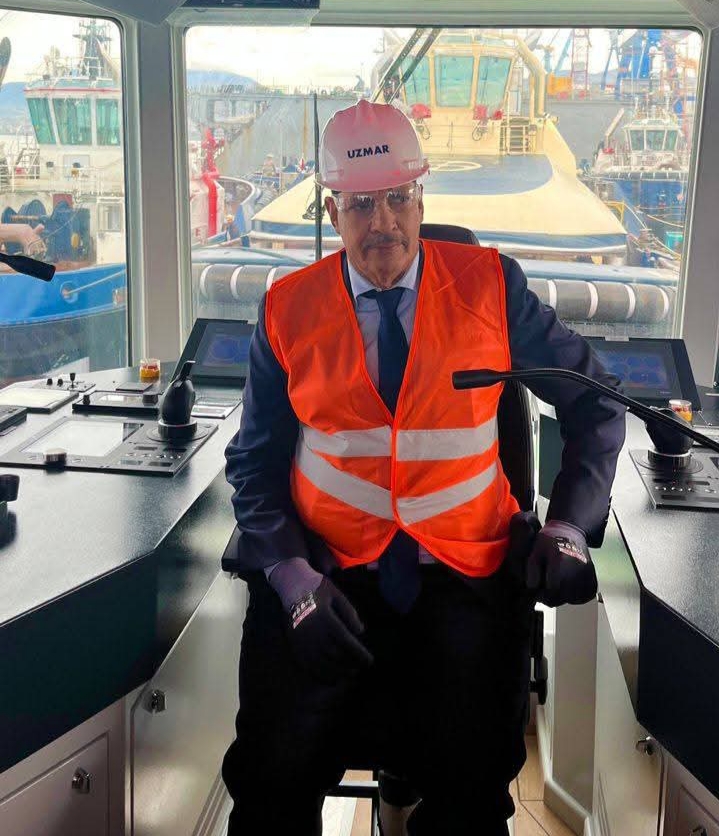 وشملت الزيارة حوض بناء السفن UZMAR Shipyard حيث أُنجزت القاطرة من طراز ASD بقدرة 4,318 حصانًا، وبقوة شد تتراوح بين 50 و60 طنًا، وفق تصميم Robert Allan.