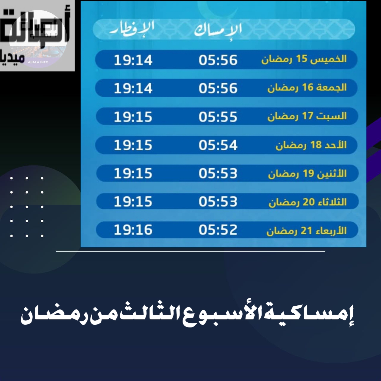 إمساكية الاسبوع الثالث من رمضان